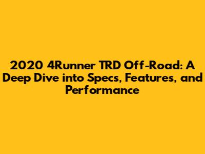 Hey guys! So, you're curious about the 2020 Toyota 4Runner TRD Off-Road? Awesome choice! This SUV is a beast, a legend in its own right, and a true embodiment of the off-road spirit. We're going to dive deep into the 2020 4Runner TRD Off-Road specs, features, and performance to give you the full picture. Buckle up, because we're about to explore everything that makes this vehicle a top pick for adventurers and everyday drivers alike.
