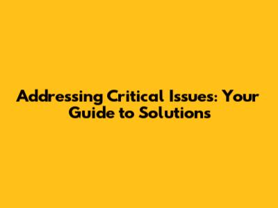 Addressing Critical Issues: Your Guide To Solutions