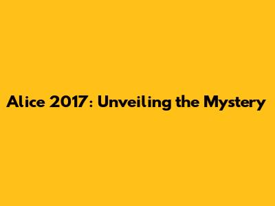 Alice 2017: Unveiling The Mystery
