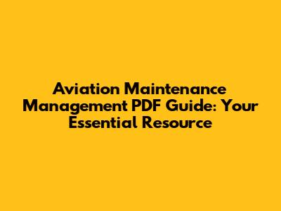 Aviation Maintenance Management PDF Guide