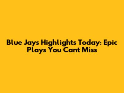 Blue Jays Highlights Today: Epic Plays You Can't Miss