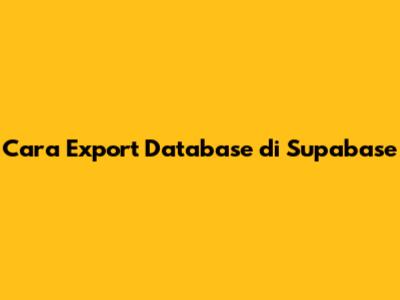 Cara Export Database Di Supabase