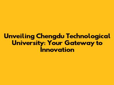 Unveiling Chengdu Technological University: Your Gateway to Innovation