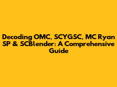 Decoding OMC, SCYGSC, MC Ryan SP & SCBlender: A Comprehensive Guide