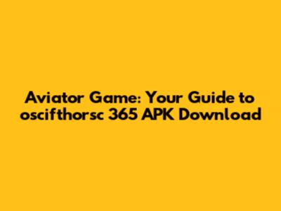 Download Aviator Game APK: Oscifthorsc 365 Guide