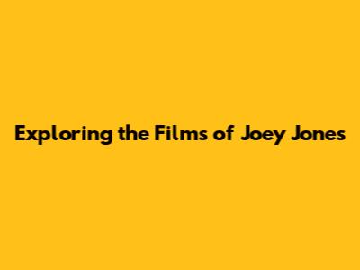 Exploring The Films Of Joey Jones