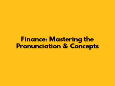 Finance: Mastering The Pronunciation & Concepts