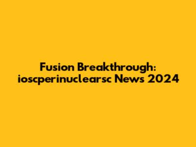 Fusion Breakthrough: Ioscperinuclearsc News 2024