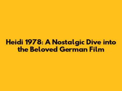 Heidi 1978: A Nostalgic Dive Into The Beloved German Film