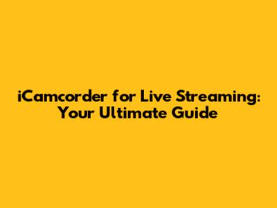 ICamcorder For Live Streaming: Your Ultimate Guide