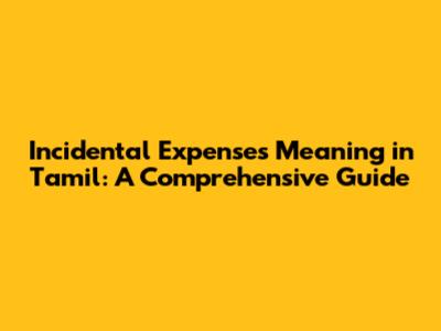 Incidental Expenses: Meaning And Examples In Tamil