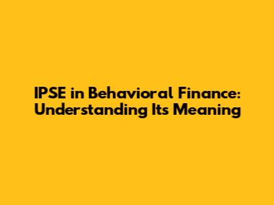 IPSE In Behavioral Finance: Understanding Its Meaning
