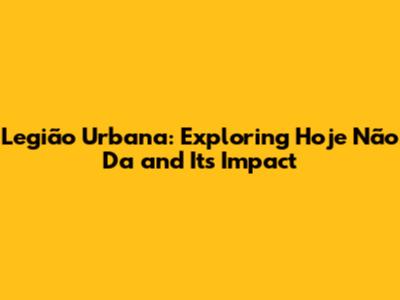Legião Urbana: Exploring 'Hoje Não Da' And Its Impact