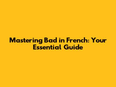 Mastering 'Bad' In French: Your Essential Guide