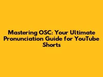 Mastering OSC: Pronunciation Guide For YouTube Shorts