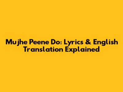 Mujhe Peene Do: Lyrics & English Translation Explained