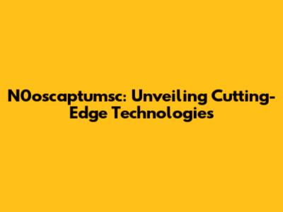 N0oscaptumsc: The Future Of Tech & Innovation