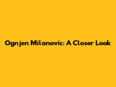 Ognjen Milanovic: A Closer Look