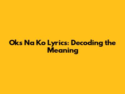 Oks Na Ko Lyrics: Decoding The Meaning