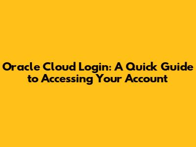 Oracle Cloud Login: A Quick Guide To Accessing Your Account