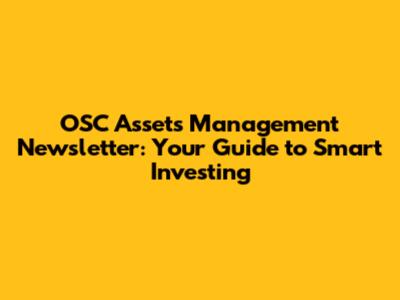 OSC Assets Management Newsletter: Your Guide To Smart Investing