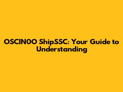 What Exactly is OSCIN0O ShipSSC? The Basics
