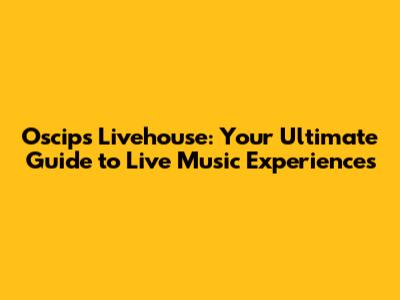 Oscips Livehouse: Your Ultimate Guide To Live Music Experiences