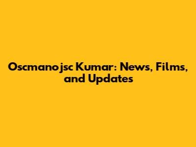 Oscmanojsc Kumar: News, Films, And Updates