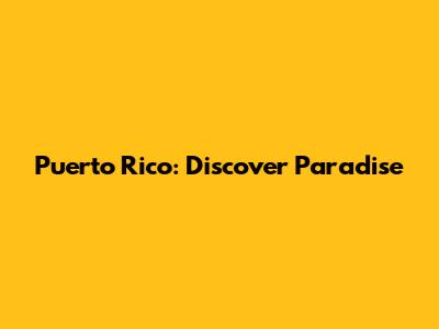 Puerto Rico: Discover Paradise