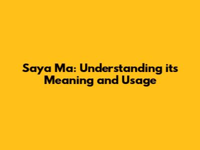 Saya Ma: Understanding Its Meaning And Usage