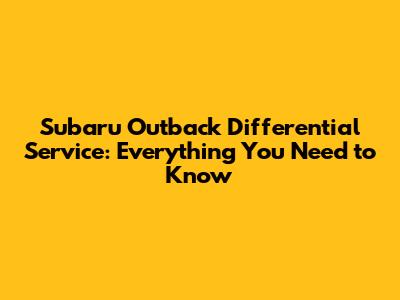 Subaru Outback Differential Service: Everything You Need To Know