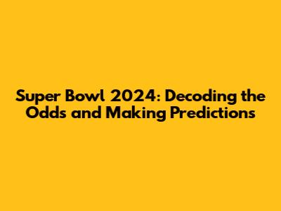 This year's Super Bowl is shaping up to be a thriller, and the Super Bowl 2024 odds reflect the close competition expected. Several teams are emerging as strong contenders, each with their unique strengths and strategies. The journey to the Super Bowl is a long and arduous one, filled with intense rivalries, unexpected upsets, and unforgettable moments. Every team has its own story, its own set of challenges, and its own aspirations. As we approach the big game, it's essential to understand the factors that will influence the outcome. From the performance of key players to the strategic decisions of the coaches, every detail matters. The Super Bowl 2024 is more than just a game; it's a cultural phenomenon that brings people together from all walks of life. It's a celebration of athleticism, teamwork, and the spirit of competition. The excitement is palpable as fans gear up for the biggest event in American sports. Get ready to witness a spectacle of skill, determination, and entertainment, with the Super Bowl 2024 promising an experience like no other. We will consider the Super Bowl 2024 predictions from the experts and how these insights can shape your betting strategies and enhance your viewing experience. Understanding the Super Bowl 2024 odds is not just about numbers; it's about understanding the narrative, the momentum, and the potential of each team. The stage is set, the teams are ready, and the countdown to Super Bowl 2024 has begun. Let the games begin!