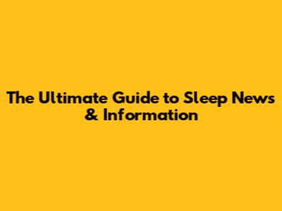 The Ultimate Guide To Sleep News & Information