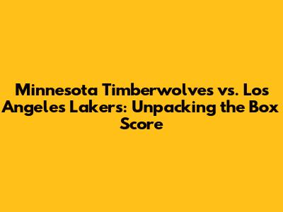Hey sports fans! Let's dive deep into the thrilling matchup between the Minnesota Timberwolves and the Los Angeles Lakers. This game was packed with action, and we're here to break down the box score, analyze the key plays, and give you the lowdown on what went down on the court. Buckle up, because we're about to dissect the stats, the strategies, and the standout performances that defined this epic battle. We'll explore the critical aspects of the game, including player statistics, team performance, and strategic decisions that influenced the final outcome. Whether you're a die-hard fan or a casual observer, this analysis will give you a comprehensive understanding of the game's dynamics.