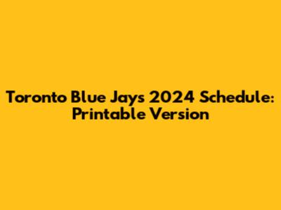 Toronto Blue Jays 2024 Schedule: Printable Version