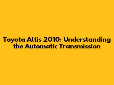 How the Toyota Altis 2010 Automatic Transmission Works