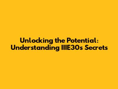 Unlocking The Potential: Understanding IIIE30's Secrets