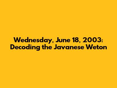 Hey there, folks! Ever wondered about the fascinating world of Javanese astrology and how it intertwines with daily life? Today, we're diving deep into the Weton for Wednesday, June 18, 2003. Get ready to explore the rich cultural tapestry and discover what the stars (or, well, the Javanese calendar) have to say about this particular day. This article is your friendly guide to understanding the Weton, its components, and what it might reveal about the characteristics and potential of individuals born on a specific day. So, buckle up, grab your favorite beverage, and let's unravel the mysteries of Wednesday, June 18, 2003, in the context of the Javanese calendar! This deep dive will uncover not only the Weton itself but also delve into the significance of each component and its influence on various aspects of life, as understood through the lenses of Javanese tradition. This exploration will help you appreciate the depth of Javanese cultural heritage and its profound connection to the cosmic rhythms. This article aims to provide a comprehensive understanding of the Weton, making it accessible and engaging for anyone interested in exploring the intricacies of Javanese astrology. Get ready to explore the different aspects, meanings, and influences of the Weton in the cultural aspects. We will explore the way the Javanese people understand life's journey.